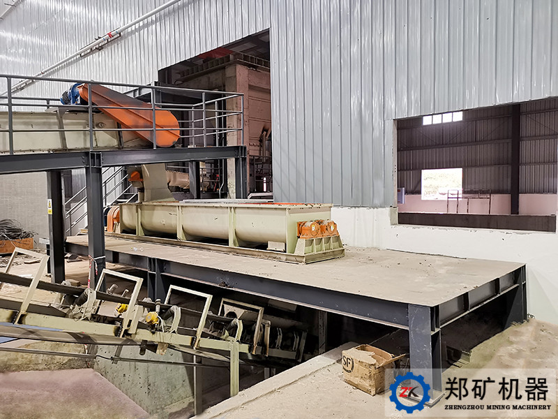 我司污泥陶粒生產(chǎn)線工藝主要采用配料、陳化、造粒、焙燒、冷卻、篩分、包裝等工藝流程。污泥含水率一般為80%,堆積密度1.1t/m?。由于污泥自身含水率較高,需要與頁巖粉、粘土等原料通過稱量配比,再進行混合攪拌,攪拌后的物料通過皮帶輸送機轉(zhuǎn)運至陳化車間。