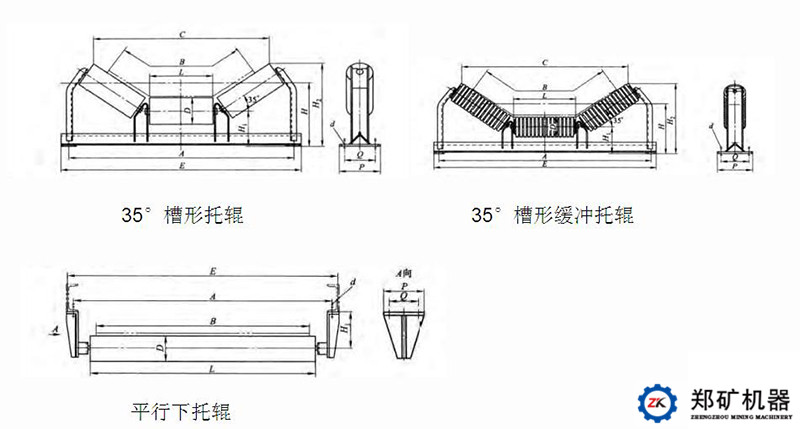 傾斜托輥與水平托輥之間的夾角稱為槽形托輥的槽角,是影響輸送能力的一個(gè)重要參數(shù)。我國(guó)TD75系列帶式輸送機(jī)規(guī)定槽角為30°,隨著輸送帶結(jié)構(gòu)的改進(jìn)和橫向撓性的提高,使用大槽角托輥已成為發(fā)展方向,現(xiàn)已普遍采用35°的槽角作為標(biāo)準(zhǔn)托輥,*大槽角已達(dá)到60°。