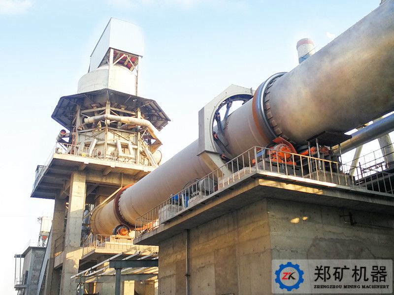 白云石選用節(jié)能環(huán)保型回轉(zhuǎn)窯,帶豎式預(yù)熱器及豎式冷卻器。料場粒度、質(zhì)量均符合要求的白云石由皮帶輸送機(jī)輸送至預(yù)熱器進(jìn)料管進(jìn)入預(yù)熱器,與從回轉(zhuǎn)窯流入的高溫?zé)煔鈸Q熱,被預(yù)熱至800℃以上,落至轉(zhuǎn)運(yùn)溜槽后入回轉(zhuǎn)窯經(jīng)1250℃高溫煅燒成活性煅白,再卸入冷卻器內(nèi),高溫煅白在此與風(fēng)機(jī)鼓入的冷風(fēng)換熱,將活性煅白冷卻至100℃以下,空氣被預(yù)熱至600℃以上,入窯助燃,冷卻后的活性煅白由冷卻器卸出后經(jīng)鱗板輸送機(jī)輸送至煅白料倉。